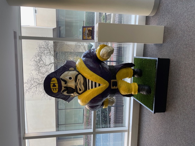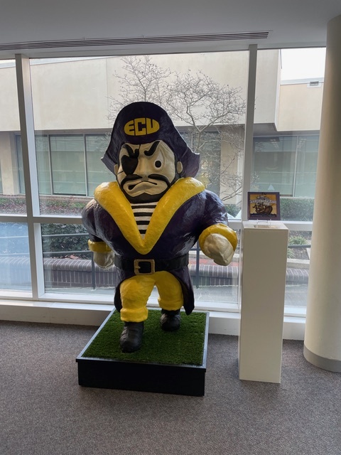 - Photograph of the PeeDee statue in Joyner Library, donated by Ralph Finch of Beta Phi